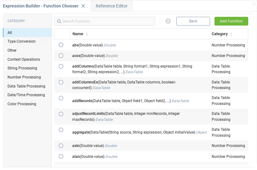 • Редактор ссылок находится на вкладке в правой панели и позволяет редактировать текущую выбранную ссылку в области выражения. Любая часть ссылки может быть изменена независимо. При внесении изменений текст выражения обновляется. Кнопка Вычислить позволяет получить доступные значения.