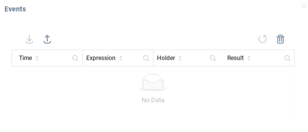 • На панели " События" в нижней центральной части отображается список событий, которые были вызваны при оценке выражений.